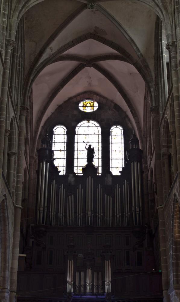 ► Le destin tragique de l’ancien archevêché fait qu’aujourd’hui on appelle "cathédrale", un édifice qui n’est plus qu’un témoignage du passé d’un lieu clef dans le rayonnement du christianisme breton. La déchristianisation révolutionnaire à eu raison d’une grande partie des mobiliers, en particulier l’ancien jubé qui fermait le chœur. Les stalles du XIV restent l’élément le plus authentiquement représentatif de l’ancienne importance du lieu. Des vitraux du XIII ont aussi miraculeusement traversé les siècles, non sans quelques désagréments, en particulier la maîtresse-vitre du chevet qui racontent en 48 médaillons la vie de plusieurs saints, la Passion ou encore l’enfance du Christ.