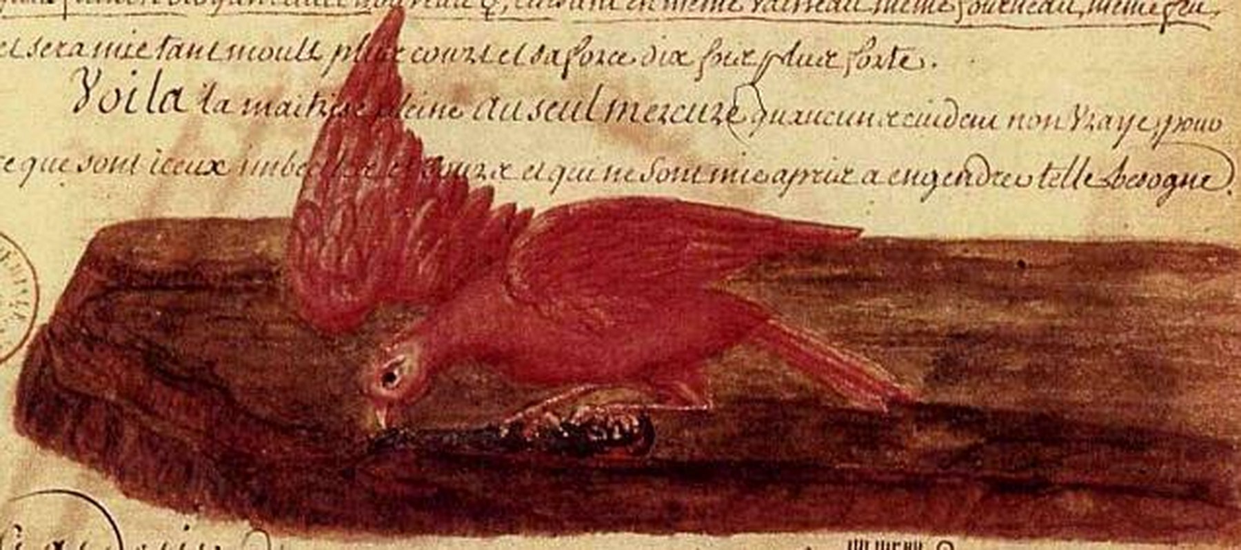 Note que la prime imbibition d’icelle poudre rouge une part mue cent parts. Une de la seconde mille parts, de la troisième dix mille, de la quatrième cent mille et toujours de plus en plus fort, chose que ne pourras mie comprendre si ne l’avises de tes yeux.