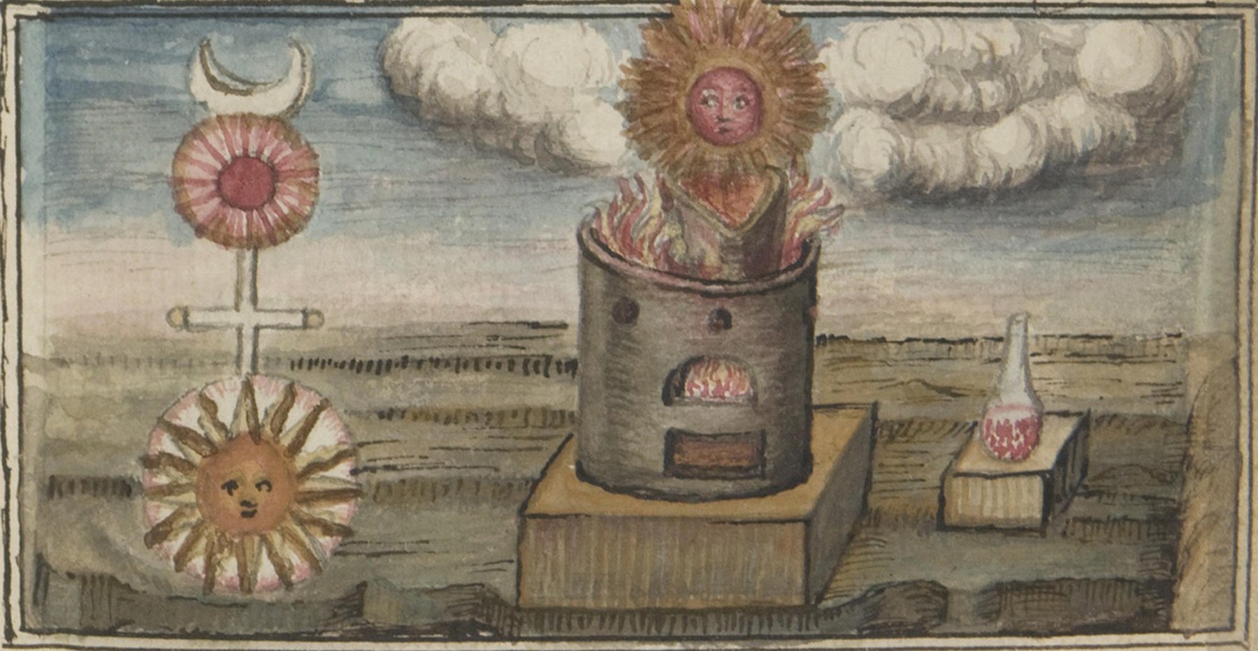 Cuis tant que l’or et le mercure ne montent et ne descendent plus et que demeurent tous deux cois et jà sera fait paix et accord entre les deux dragons qui sont feu et eau tout ensemble. Lors auras en ton vaisseau face noire ainsi que poix fondue qui est marque de mort. Et pourriture de l’or et la clef de toute la maîtrise.