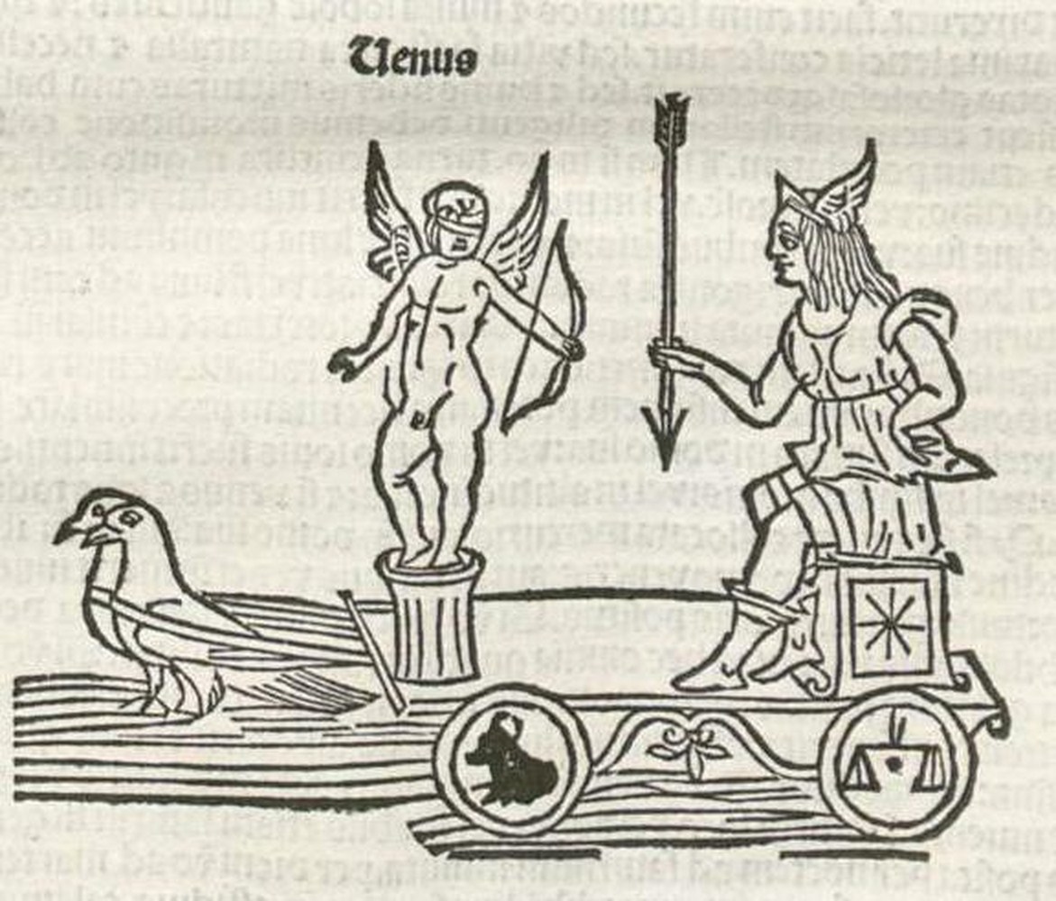 🕮 Dorbon-Aîné, ref.104 : Incunable rare, illustré de très nombreuses capitales ornées et de 303 gravures sur bois tout à fait intéressantes et parmi lesquelles une quantité de thèmes astrologiques au centre desquelles se trouvent un ou plusieurs personnages en costumes de l’époque synthétisant les types que produisent les différentes conjonctions de planètes et les professions que ceux-ci sont destinés à embrasser. C’est là l’édition originale à 40 lignes à la page qu’indiquent Brunet et le Gesamtkatalog. Il y manque le premier feuillet, celui du titre, et le dernier qui contient le colophon, lesquels ont été refaits à la main au XVIIIe siècle : le colophon a d’ailleurs été fait d’une façon erronée et copié sur la seconde édition de 1494 imprimée à Venise pour Jean Emeric de Spira. — À part ce défaut et quelques petites piqûres de vers, bel exemplaire d’un opuscule astrologique de la plus grande rareté et dans lequel ont été ajoutées 6 pages manuscrites du XVIIe siècle de commentaires en français.
