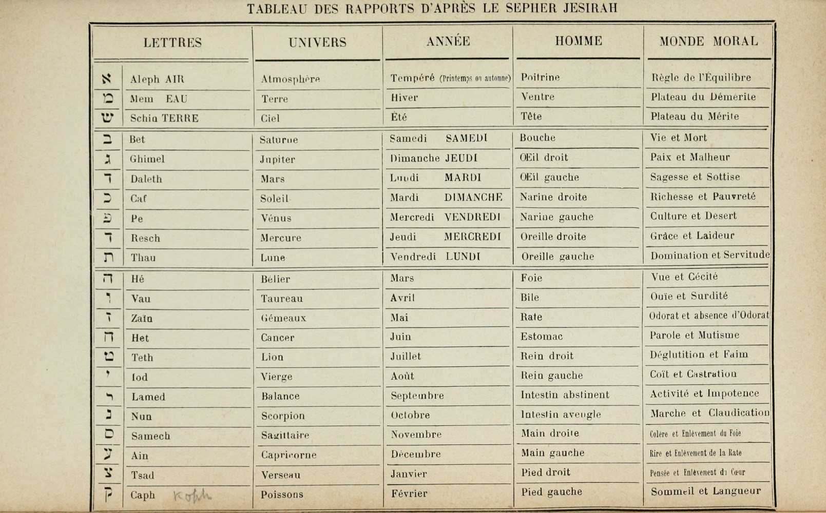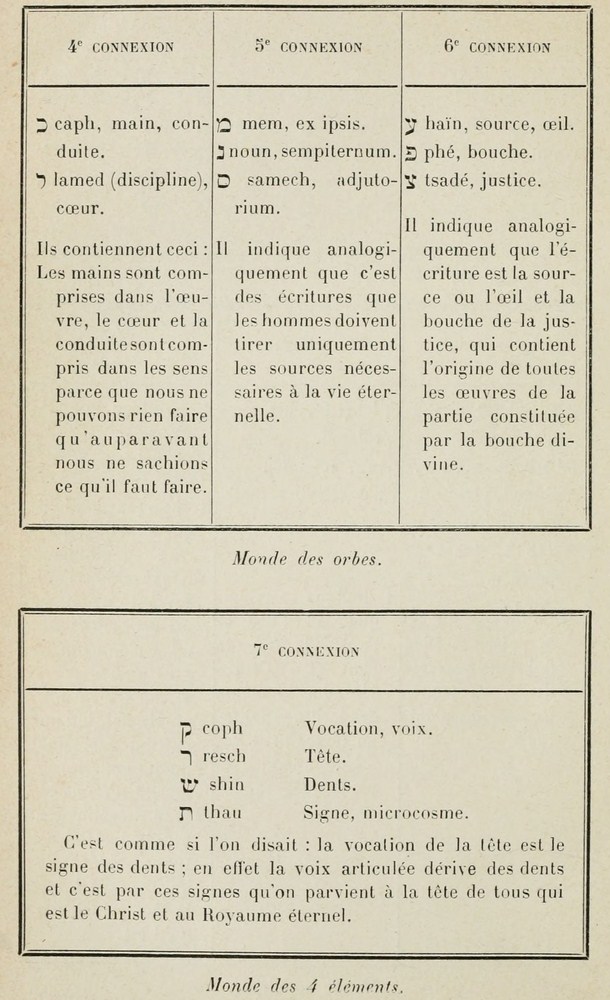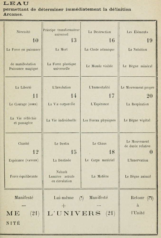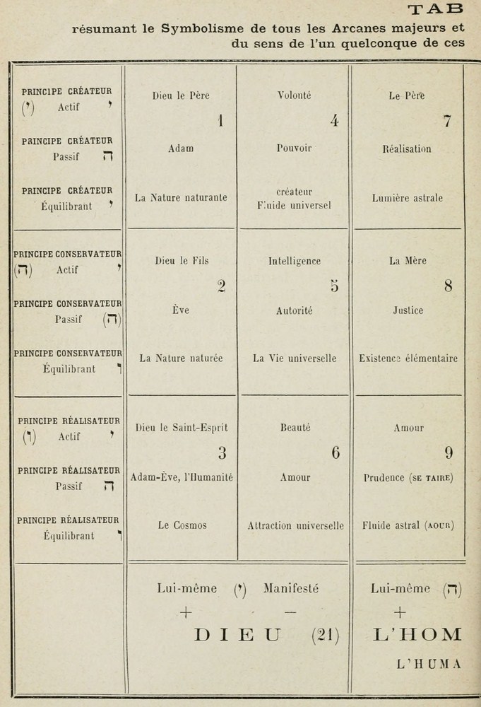 ■ Nous n’avons pas repris les schémas déjà antérieurement présents dans le Traité élémentaire de sciences occultes du même auteur et Essais de sciences maudites de Stanislas de Guaita, referez vous à ces derniers pour les consulter. Nous avons en revanche gardé l’arbre séphirotique 🗎⮵ et des tableaux de Kircher présents dans l’Œdipe égyptien {Œdipus Aegyptiacus} attendu qu’ils sont ici traduits en français, mais y avons exclu la gravure 🗎⮵ que Papus à récupéré de l’ouvrage pour la placer en frontispice puisqu’elle n’apporte rien sinon une qualité moindre.