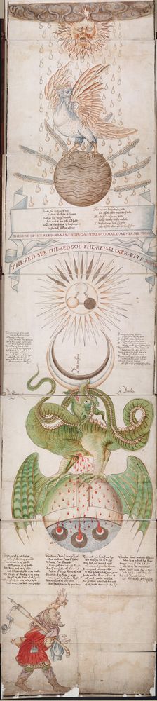 ☩ Illustrations : én. du Rouleau de Ripley, 1600. | bs. Bibliothèque Wellcome (Londres, Royaume-Uni).