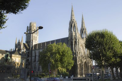 1837 – 1852 : Construction de la façade occidentale et de ses deux tours 🗎⮵. Cette construction fera polémique, jugeant les portails trop grossiers et les tours trop élevées. On restaure également ses fameuses verrières.