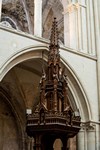 Chaire à prêcher néo-gothique de 1883, au dessus des statues d’apôtres et de saints, son abat-son est décoré de niches abritant des statuettes figurant les vertus cardinales.
