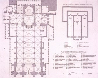 ► D’abord temple dédié à Mars, le lieu à été ensuite une église dédiée à la Vierge. Trois cathédrales se suivent, la première faite par Clovis (VI) est remplacée sous Charlemagne (VIII) et la troisième prend feu (XII).