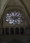 Bras nord du transept où l’on voit les tirant métalliques. Les vitraux du XX représentent le Christ juge et tout en bas les vierges sages et les vierges folles Au milieu, dix Sibylles du XVI.