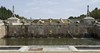 Axe principal vu depuis le château avec au premier plan derrière les deux sphinges, les Dentelles de Buis, la Source, puis la Voie au second et au fond, les Marches.