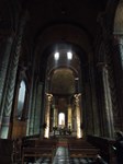 2. Seconde partie, remarquez les nombreuses colonnes peintes et dans le fond, le chœur avec la statue Notre-Dame-des-Clefs.