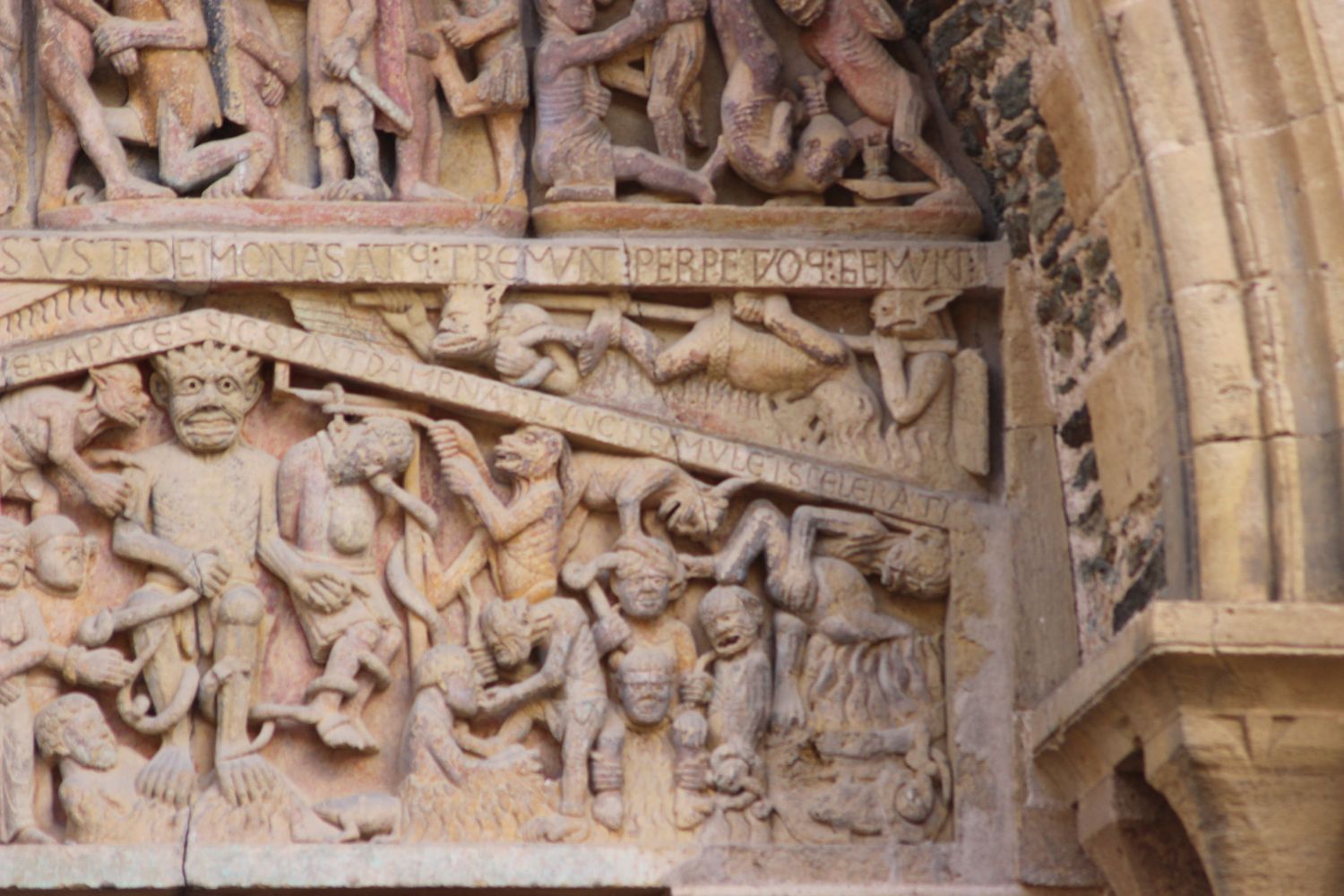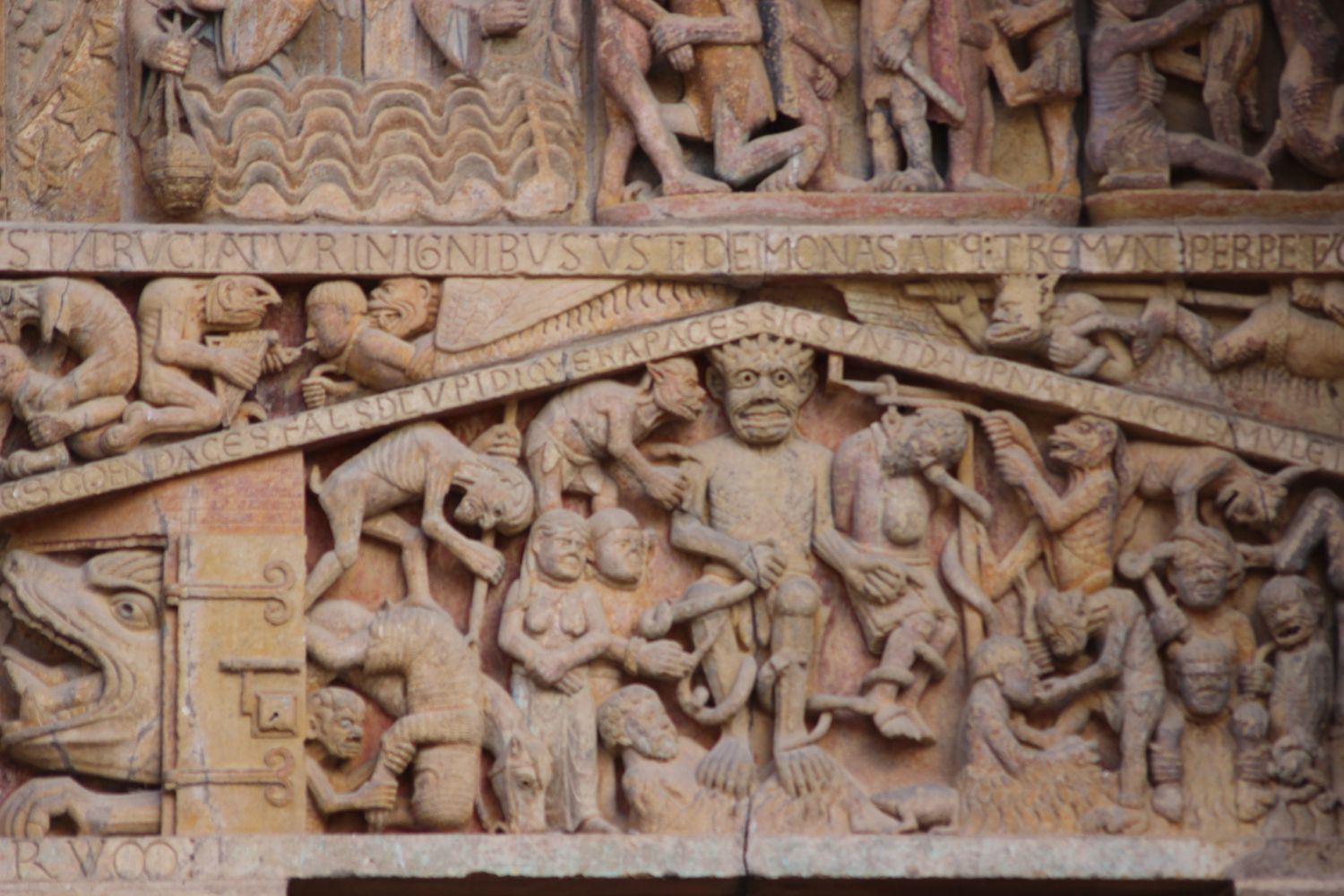 Le registre inférieur montre l’enfer et ses âmes damnées, de même au bandeau supérieur.