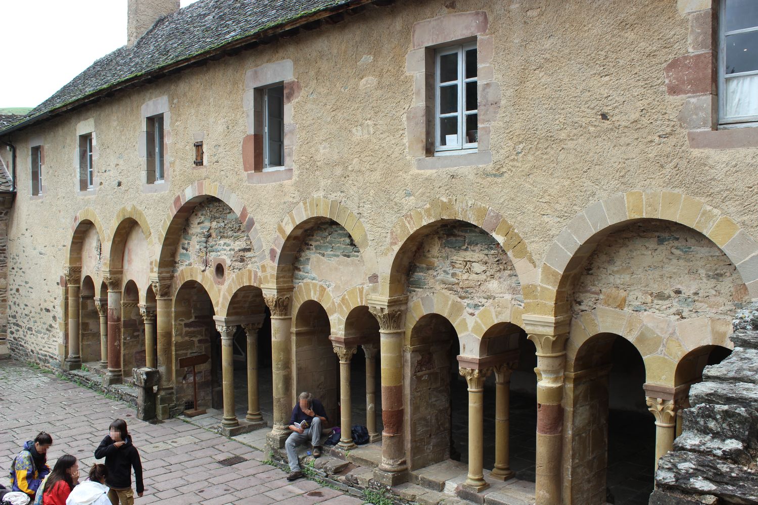 Cloître contenant le trésor médiéval de Conques. Il y demeure plusieurs chapiteaux sculptés. Les reliques de sainte Foy furent dans l’abbatiale en 1875, du reste, le trésor est le plus important de l’époque médiévale. Citons évidemment, sa Majesté de Sainte Foy, statue-reliquaire de la sainte plaqué or et argent, serti de pierres précieuses. La tête date du V et le corps du IX, elle fut retravaillé au XIV et XVI. N’ayant pu obtenir l’autorisation de prendre des photographies, nous ne nous étendrons pas sur un descriptif du trésor.