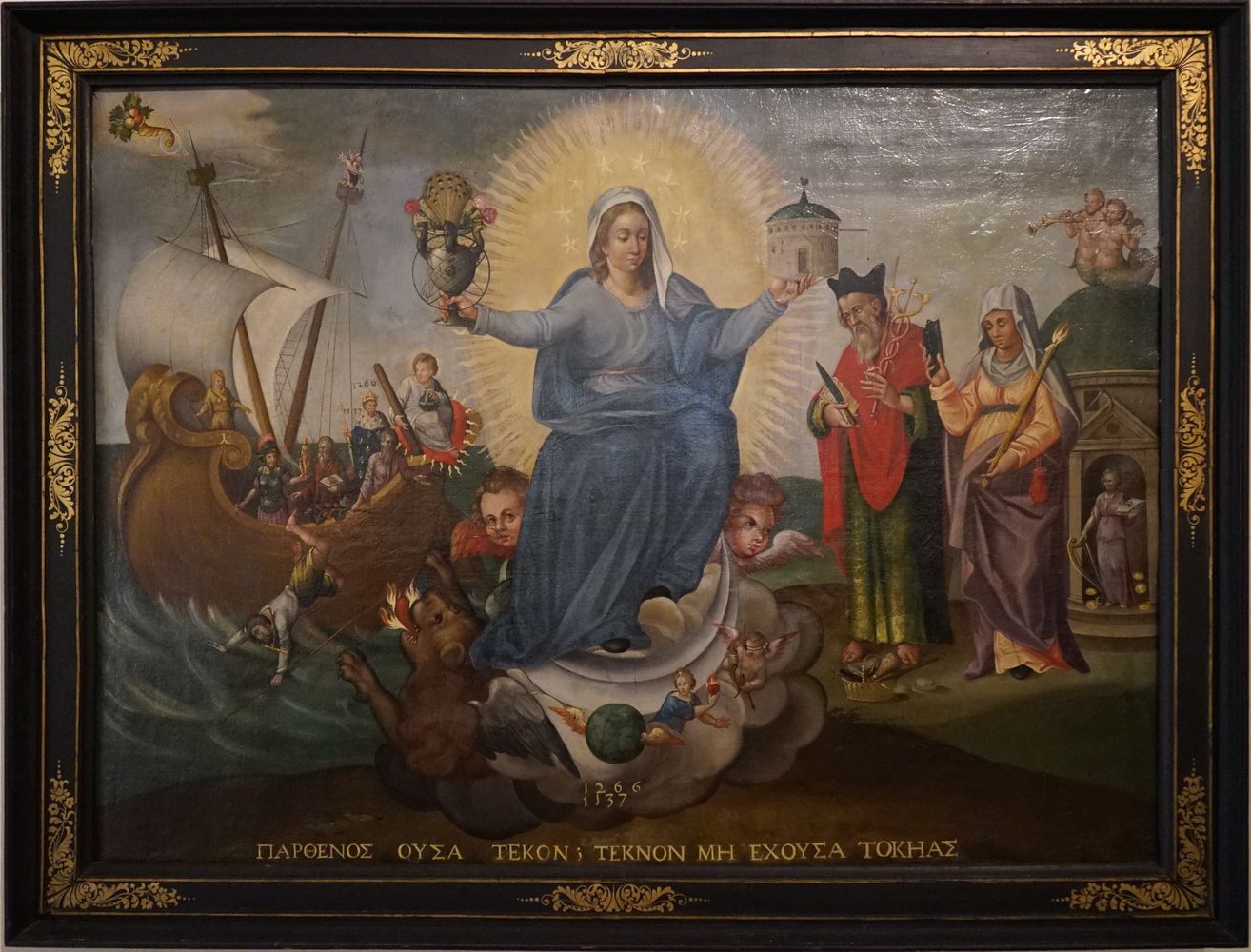 ■ On a donné différentes traductions à la phrase inscrite en grec comme : Vierge, j’ai enfanté un enfant n’ayant pas de parents