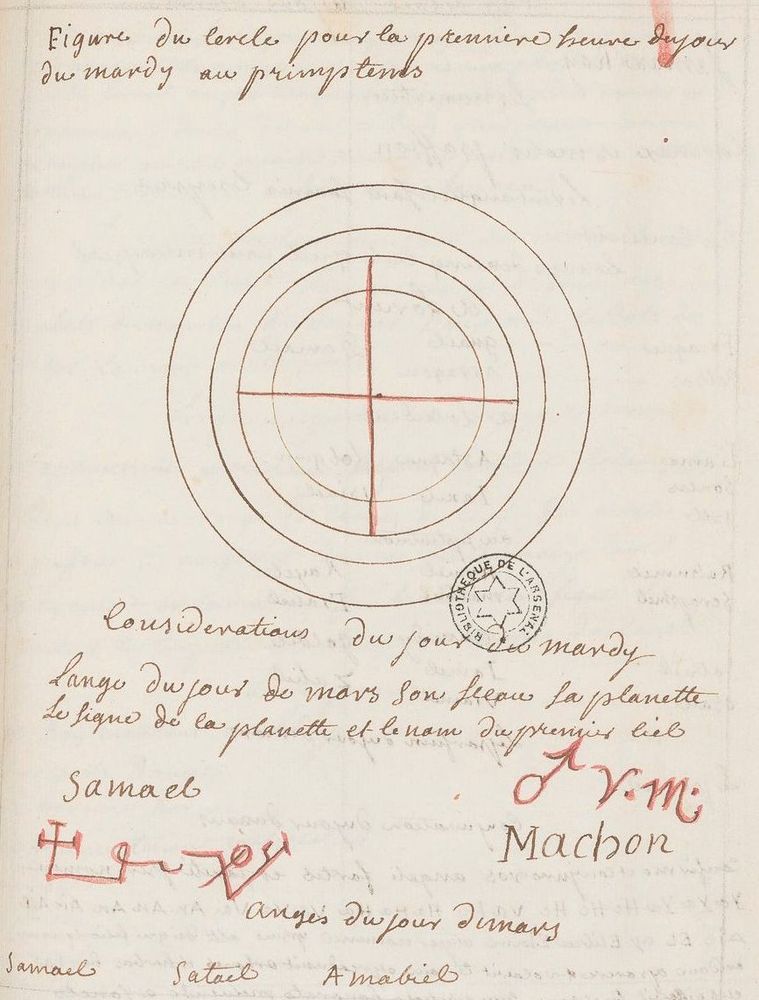 ☩ Illustrations : én. du Grimoire pour conjurer l’esprit d’un lieu in Recueil sur les sciences occultes (Arsenal Ms.2494), XVIII. | bs. Bibliothèque Nationale de France (Paris, France).