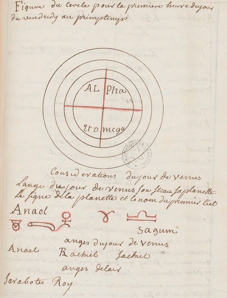 ☩ Illustrations : én. des Élémens pour opérer dans les sciences magiques (Pierre Maissonneaux) in Recueil sur les sciences occultes (Arsenal Ms.2494), XVIII. | bs. Bibliothèque Nationale de France (Paris, France).