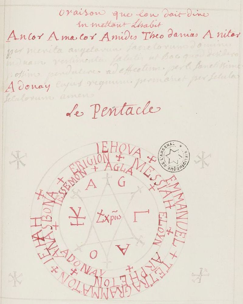 ■ Sur une des pages, un simple pentagramme était tracé, nous ne l’avons pas rapporté ici étant donné le peu d’intérêt qu’il recèle.