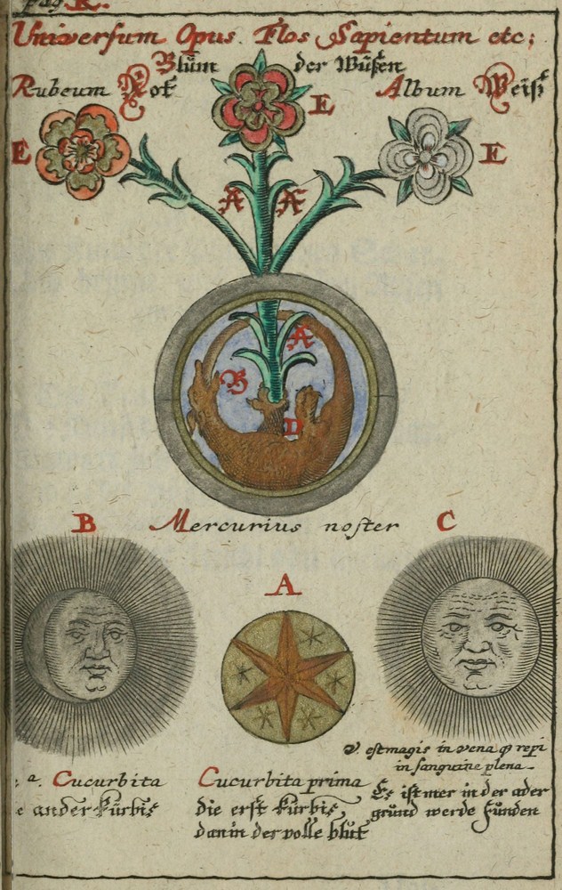► Ces illustrations sont d’ailleurs parmi les premières illustrations alchimiques accompagnant un texte, texte qui est également un des premiers de l’alchimie allemande dont on notera la symbolique chrétienne qui est ici omniprésente. Cette symbolique à été majoritairement expurgée par la suite dans les éditions ultérieures(2).