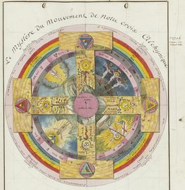 ► Ce manuscrit en trois parties et deux livres est issu d’une maçonnerie chrétienne. Il est comparable à l’Œuvre magico-cabbalistique et théosophique et surtout aux Figures secrètes de la Rose-Croix des XVIe et XVIIe siècles auxquels il emprunte certaines illustrations. Il s’agit certainement de l’un des plus beaux manuscrits ésotériques français où le texte est au service des images.