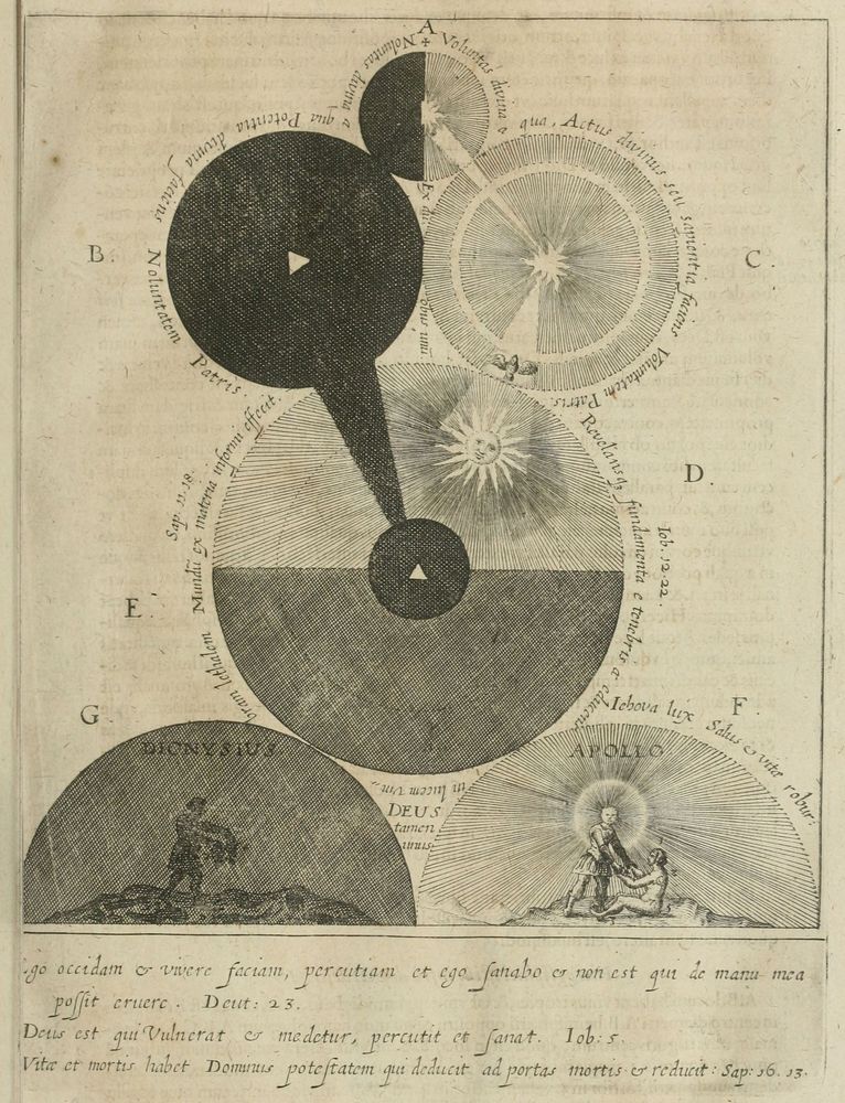 | ecr. Robert Fludd grav. Matthäus Merian | 1631 | Littérature (tech.) | Allemagne | Alchimie፧ Théosophie Médecine | ☄ ✠ ⚗ |