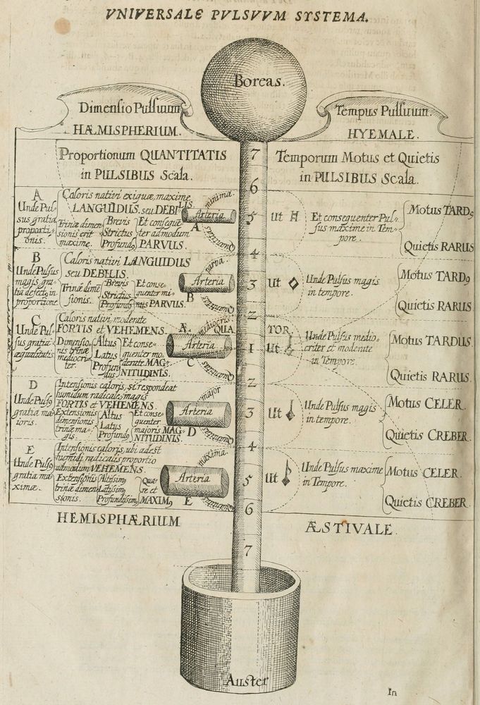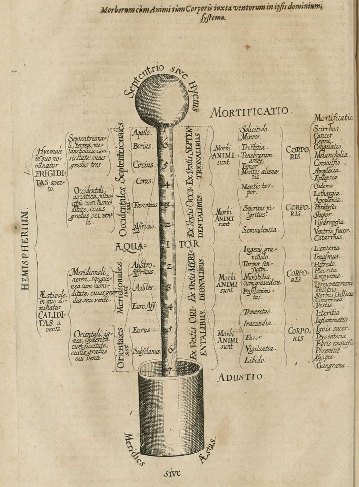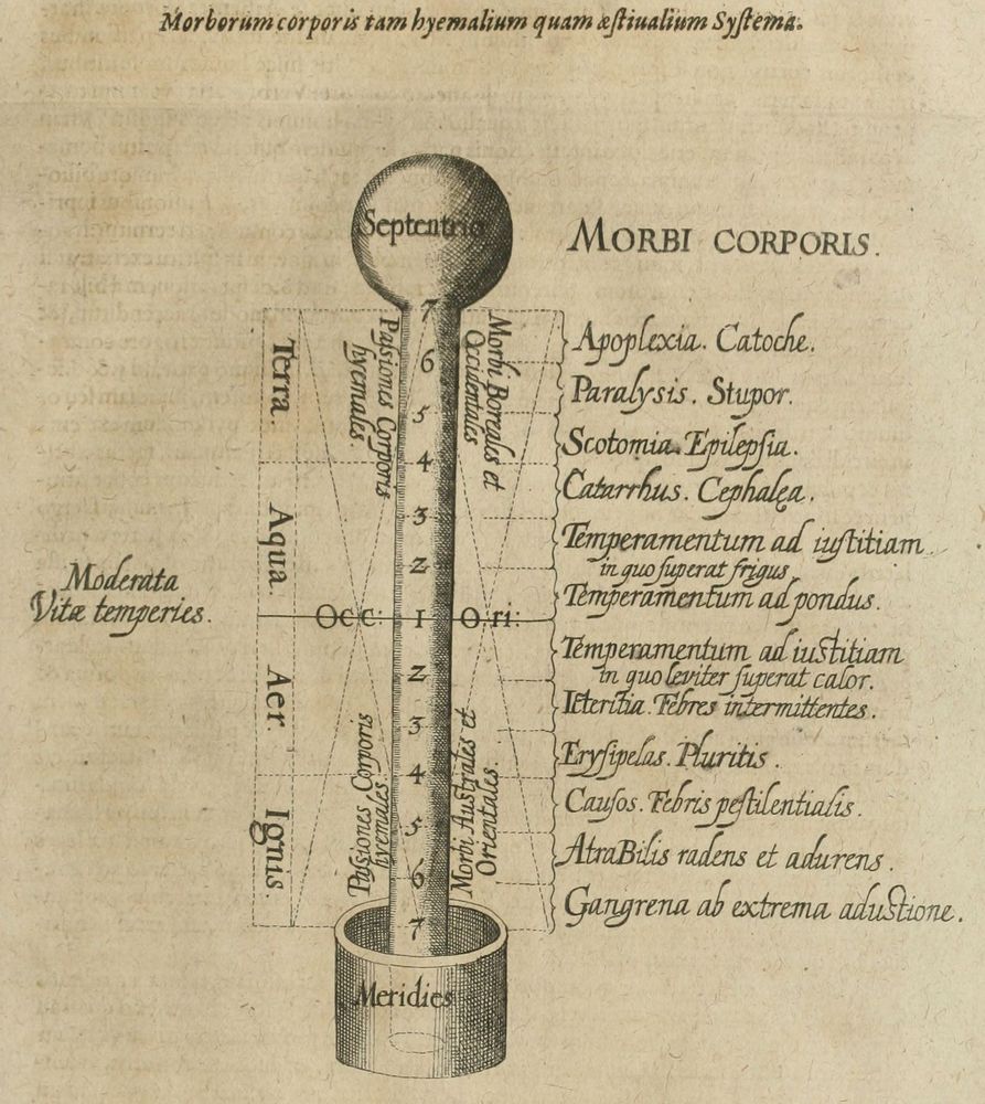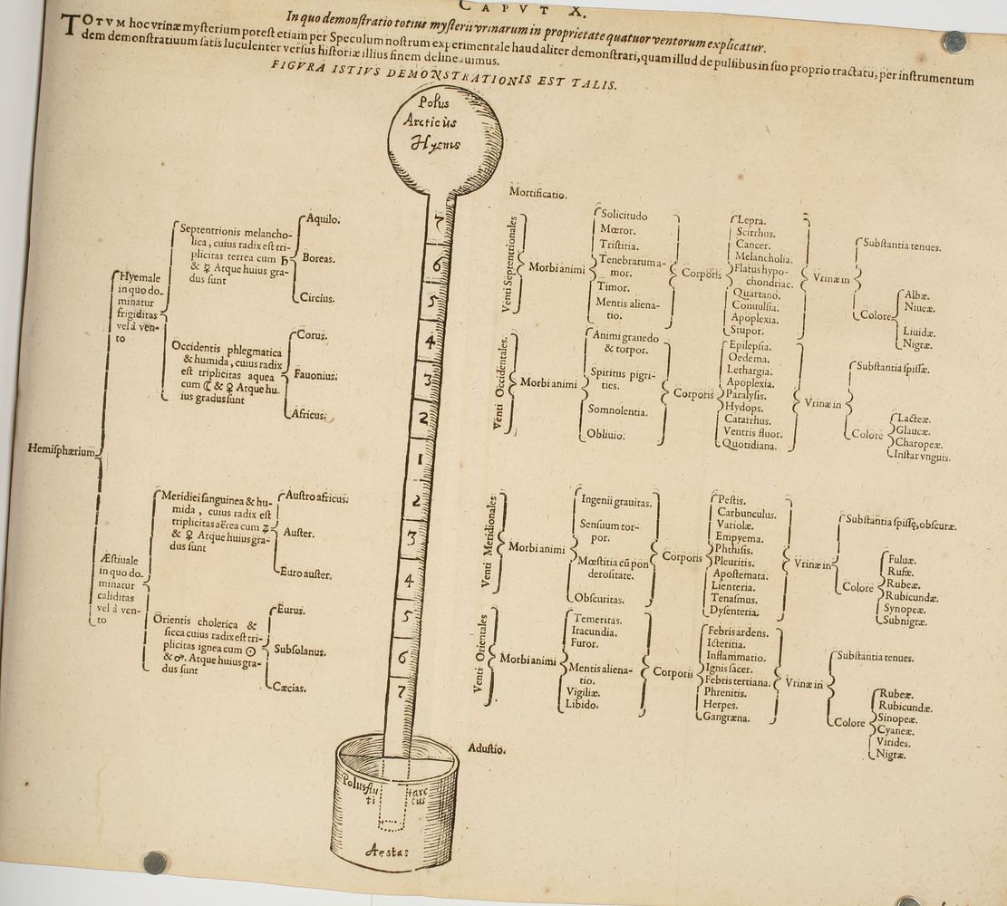 ► L’auteur développe dans ces pages ses conceptions médicales à partir d’une métaphysique dualiste se manifestant dans le monde physique(1). Il avance l’idée que les maladies trouvent leur origine dans l’assaut de démons et de vents mauvais sur la citadelle Humaine. Il décrit les diagnostiques par l’astrologie፧, l’urinoscopie et le pouls.
