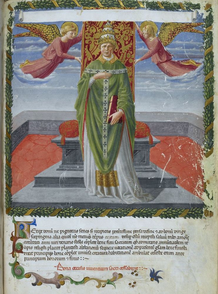 Nom : Enluminure 27 : Saint tenant une tiare papale