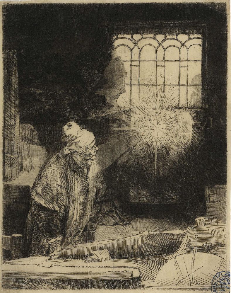 Œuvre Nom : Le Docteur Faust à l’étude (L’Alchimiste) Auteur : ? Rembrandt van Rijn Date : ? 1652 Type : Gravure sur papier Source : Bibliothèque nationale d’Espagne