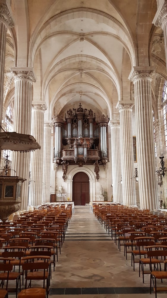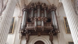 Orgue de 1679 – 1681, les cariatides sont de provenance inconnue et ont remplacé en 1879 deux colonnes en pierre XVI.