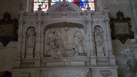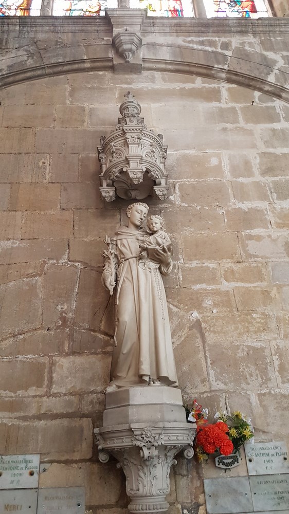 Statues ℙ du XVII de saint-Antoine et de Saint Roch, une Pâmoison de la Vierge de Ligier Richier datant de 1531 et la pierre tombale de Warin de Gondrecourt avec écrit un passage de l’Évangile de Jean : Vulg. :