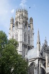Coté nord de l’abbatiale avec en hauteur, sa tour couronnée flamboyante.