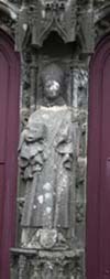 Statues à droite du porche aux apôtres, saint Christophe à gauche.