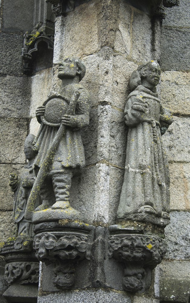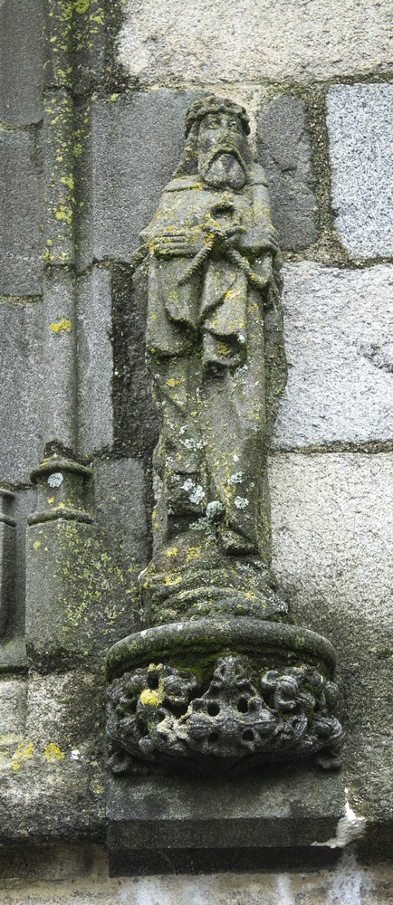 ● Le tympan du portail occidental représentant une Adoration des Mages avec Marie qui, à la différence de la position assise classique romaine, est encore allongée dans le lit de l’étable, l’enfant reposant sur sa poitrine. C’est une représentation courante dans la région du Léon, la position horizontale insiste sur l’aspect passif et nourricier de la vierge, dont on peut y voir un rapprochement avec la Déesse-Mère celte.