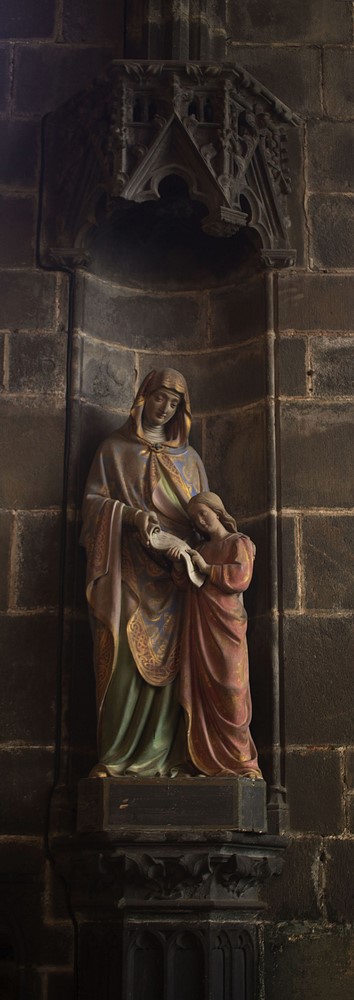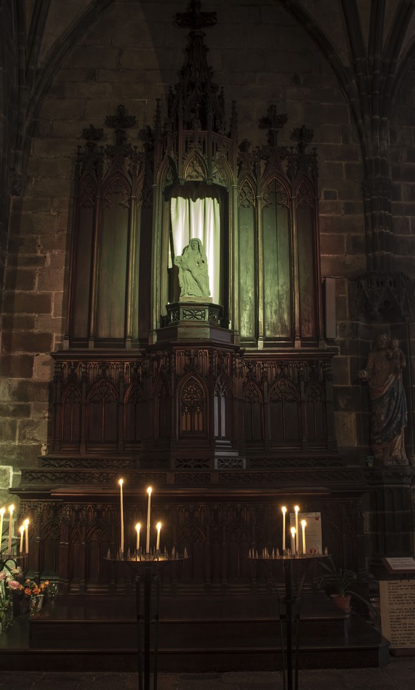 ► La basilique dispose d’un bon nombre de statue et reliefs en pierre de Kersanton dont :