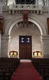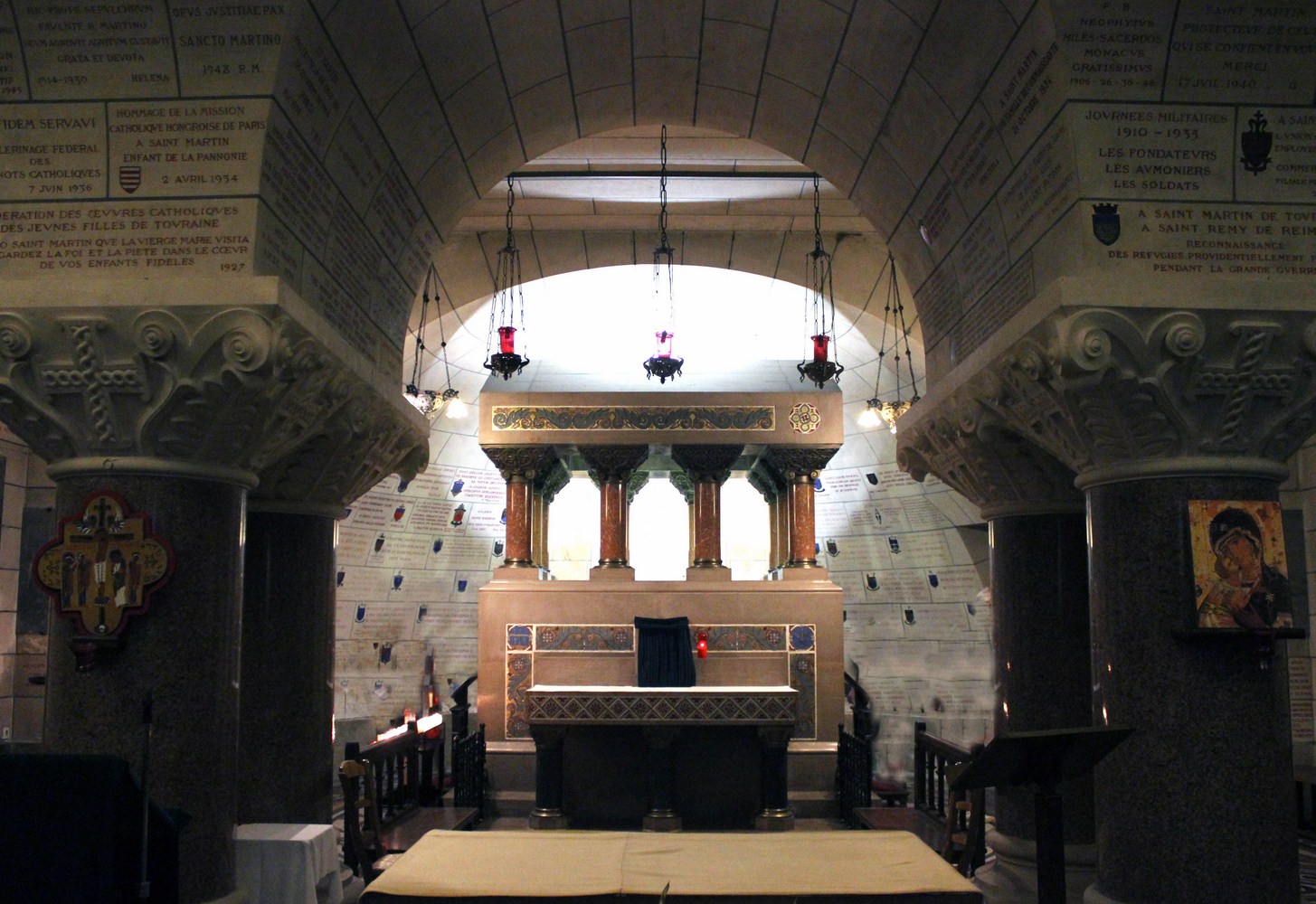 ► Outre son style néo-byzantin, la basilique moderne se caractérise par sa nef à la voûte charpentée 🗎⮵, sa coupole peinte à l’effigie de Saint-Martin 🗎⮵, ainsi que sa verrière historiée. Deux autels dédiés l’un à la Vierge 🗎⮵ et l’autre à Saint Joseph 🗎⮵ sont placés dans les chapelles de chaque coté du chœur.