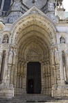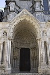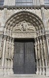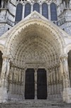 Façade occidentale au triple portail dit Portail royal, sculpté figurant trois aspects du Christ :