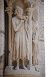 5. Près du Portail de l’Ancien testament, une statue d’un laïque avec écrit "philosophus" à sa base fixe une pierre.