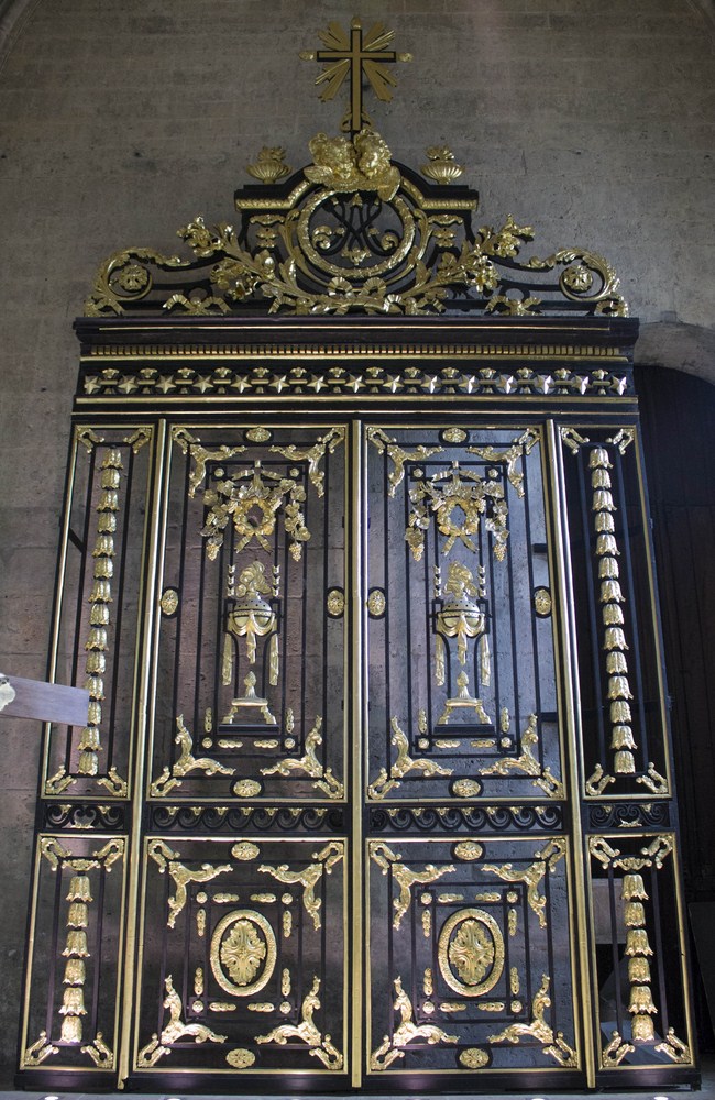 Grille de 1769 appartenant à l’ancien jubé démantelé en 1866 et que l’on peut trouver depuis le d.XXI dans la salle basse du clocher sud.