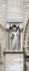 ● Le Portail Sud dit de Sainte-Anne, représentée sur l’archivolte tenant le Christ et accompagnée de deux anges ainsi que l’évêque fondateur de la cathédrale Maurice de Sully et son contemporain Louis VII roi de France.