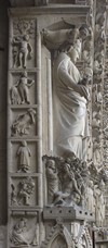► Outre les trois grands portails, chaque bras du transept transmettent une statuaire et des bas reliefs :