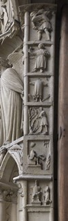 Le Portail de la Sainte Vierge au nord. Si l’on en croit Fulcanelli, le zodiaque qui y est figuré est de Christophe de Paris.
