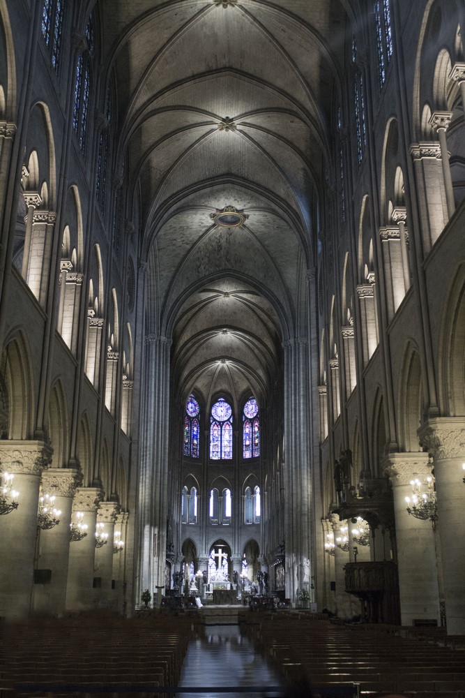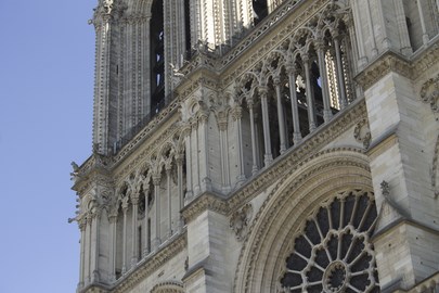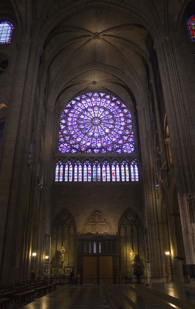 ► Son statut de cathédrale de l’archevêché de Paris, capitale française, en fait une des plus haute de France avec l’élévation፧ de ses tours occidentales qui culminent à presque 69 mètres(1). Sa hauteur sous voûtes de 100 pieds sera cependant largement dépassée par Amiens.