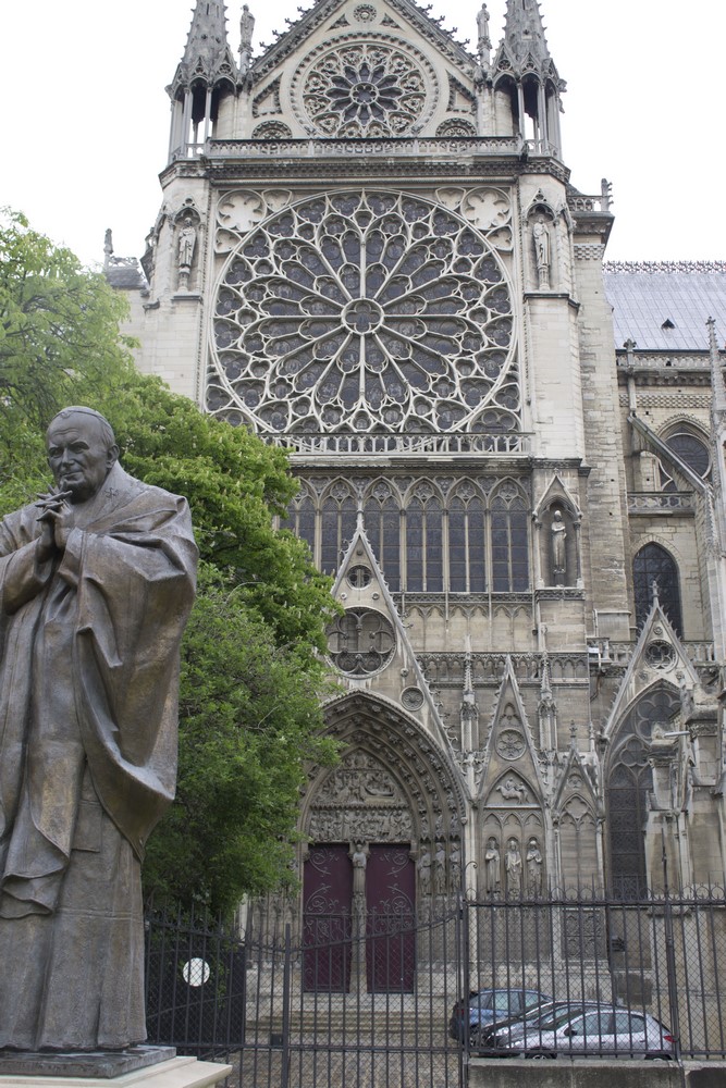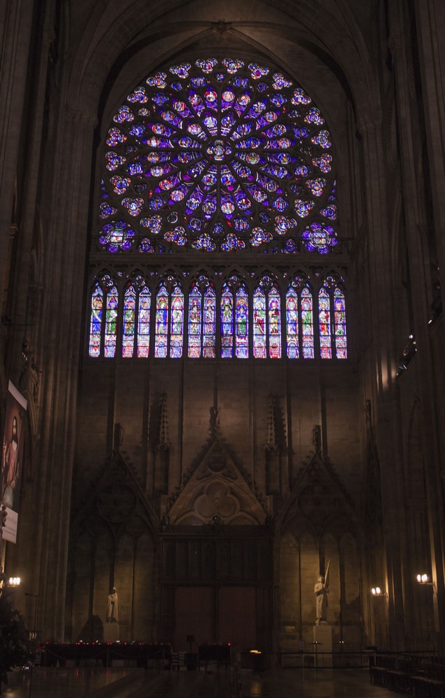 1793 : Pillage du trésor ainsi que la quasi totalité du mobilier de la cathédrale. Les statues de la Galerie des Rois évoquant les régimes monarchiques sont toutes décapitées. Après un court culte à la "Déesse de la raison", l’espace devint entrepôt et grenier à fourrage tandis que la flèche centrale fût abattu et son plomb fondu pour l’armement.