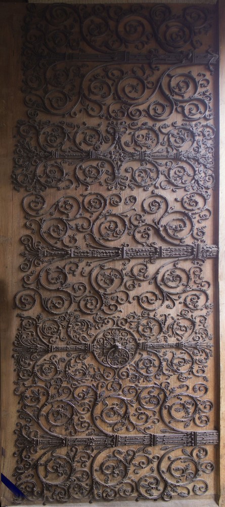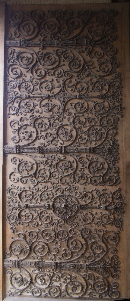 Battant gauche de la porte du Portail de la Sainte Vierge, œuvre de Biscornet.