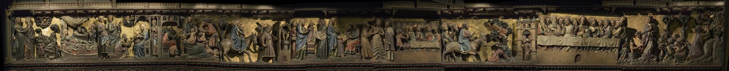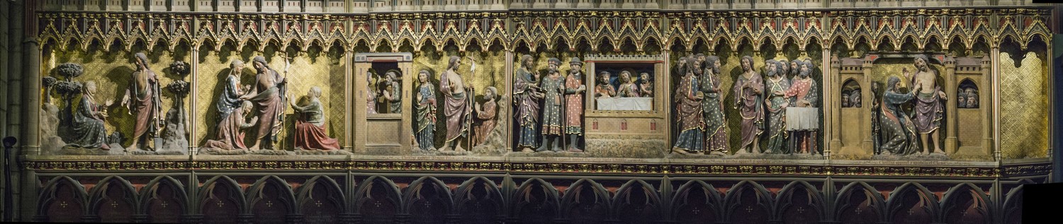 Flanc Nord du chancel dédié à la vie du Christ et élevé aux environs de 1250. Suivent, des ornements figuratifs entre les arcature de la dite cloture.