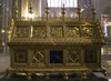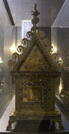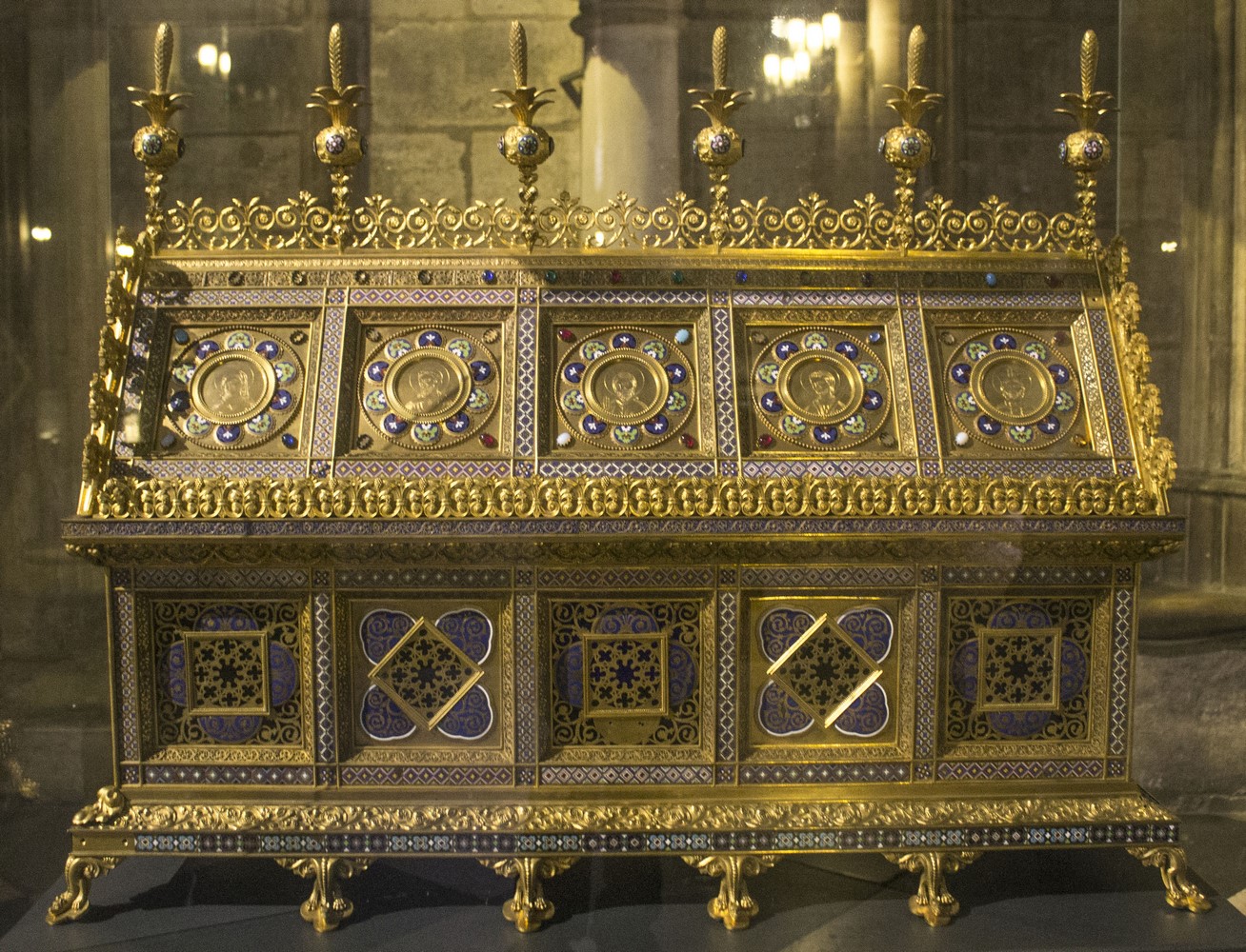 Châsse contenant les reliques de Sainte-Geneviève qui proviennent de l’ancienne élise Sainte-Geneviève devenu le Panthéon. Œuvre de Placide Poussielgue-Rusand au m.XIX.