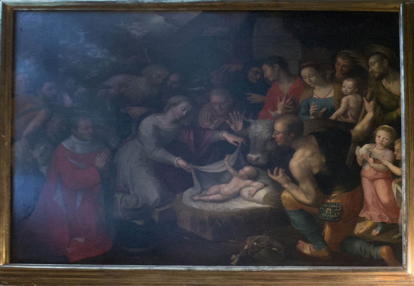 Nom : L’Adoration des Bergers, tableau de Jérôme Francken datant de 1585.