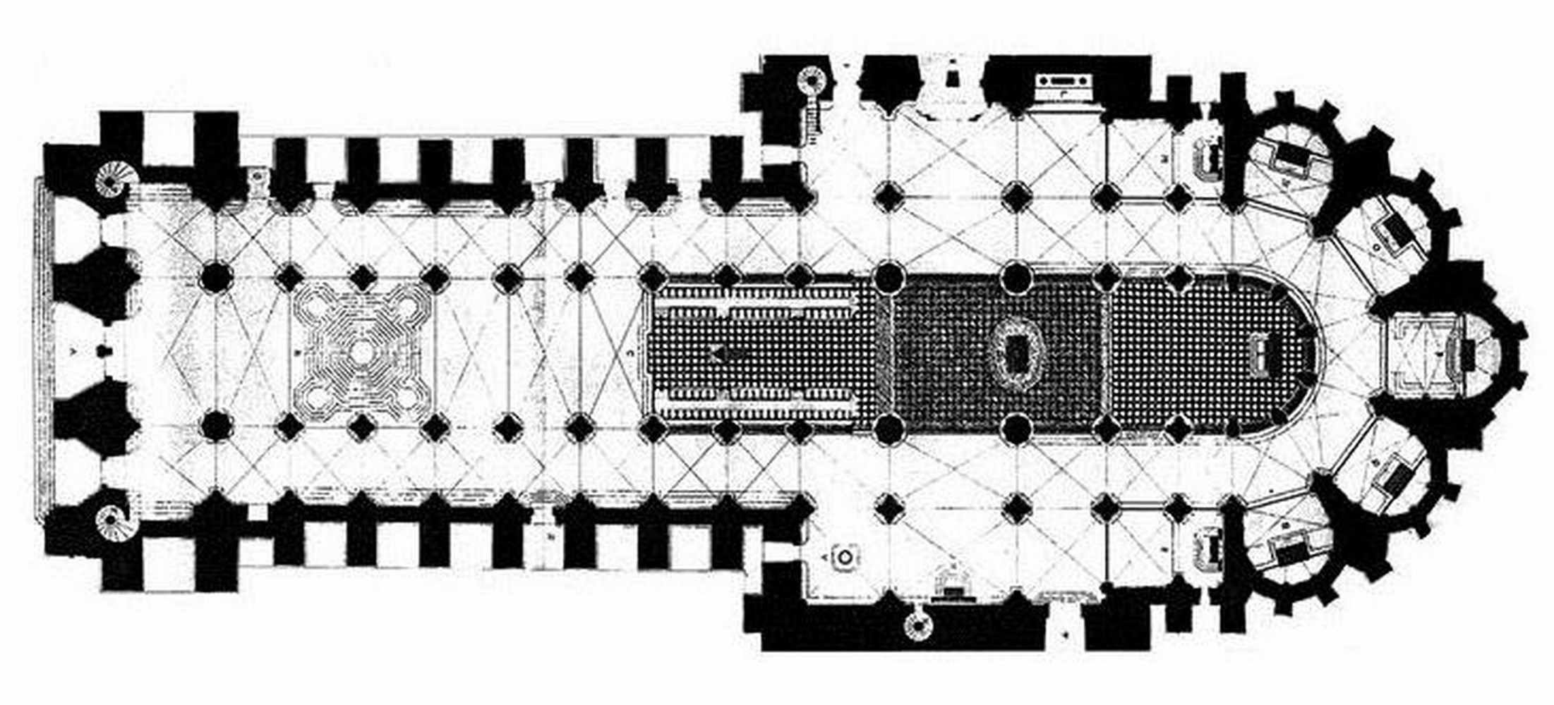 ◆ On trouvait près de l’entrée, sur le sol de la nef de la cathédrale de Reims un labyrinthe qui a été supprimé en 1779 par les chanoines pour des raisons pratiques : on dit que les enfants jouaient dessus durant les offices. Les pèlerins le parcouraient à genoux. Entre autres, Jacques Cellier à fait un relevé du labyrinthe en 1585 et c’est sur ce genre de documents que l’on base les reconstitutions. Chose unique, il était pourvu à ses extrémités de personnages symbolisant les différents maîtres d’œuvres de la cathédrale et au centre, le commanditaire de l’édifice.