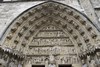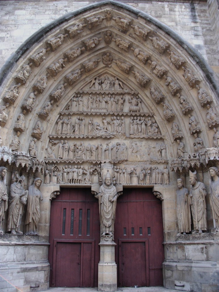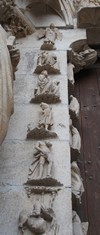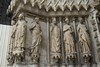 Portail droit occidental avec détails des statues des archivoltes, ébrasements et montants.