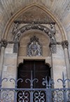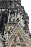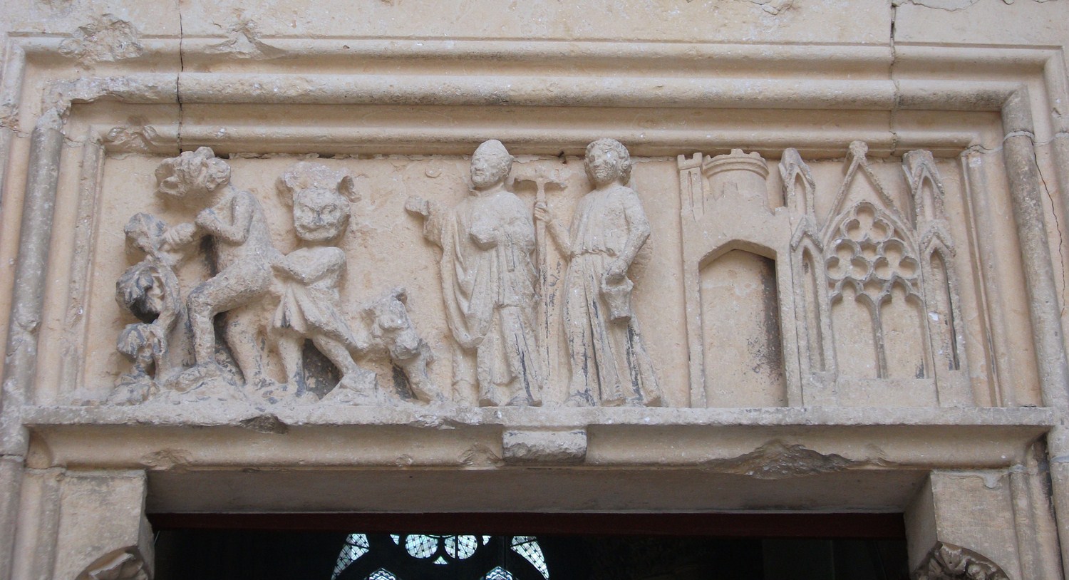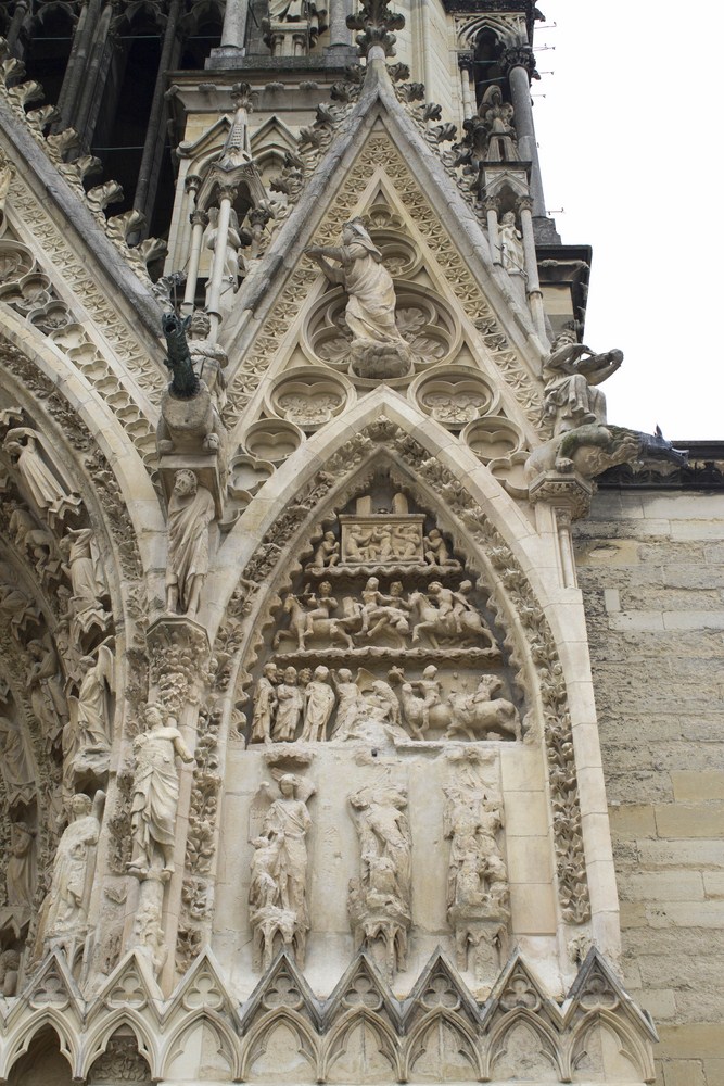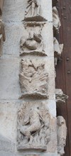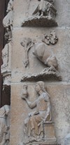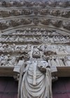 Tympan à l’extrême droite occidentale ainsi que le statuaire de la tour le surplombant.