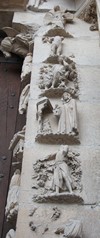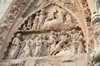 Tympan à l’extrême gauche occidentale ainsi que le statuaire de la tour le surplombant.