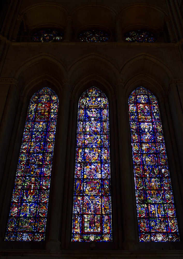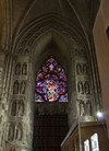 Intérieur du transept droit présentant le Vitrail de champagne de 1954.