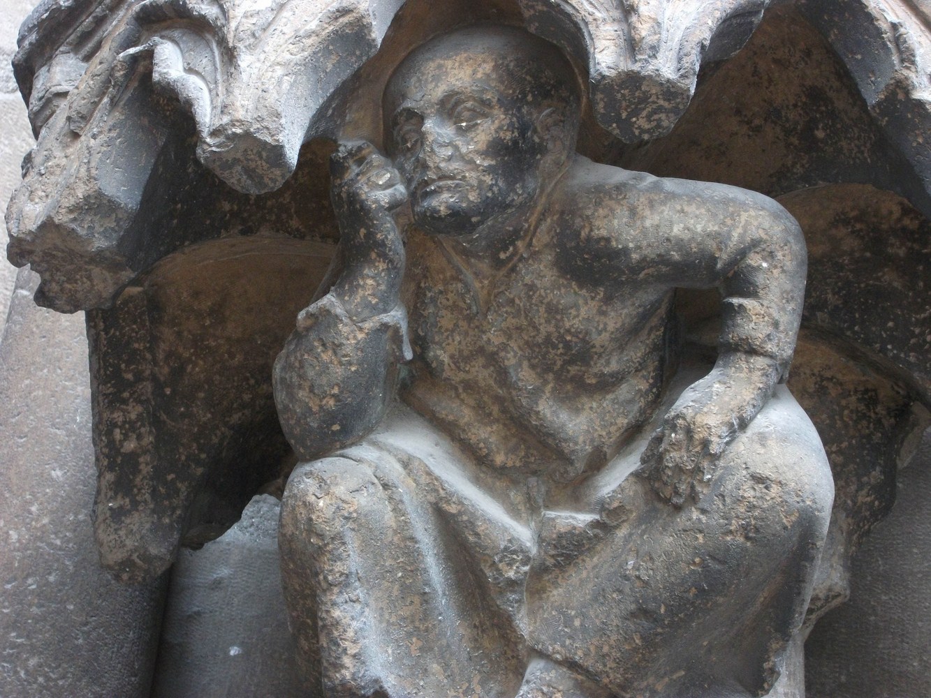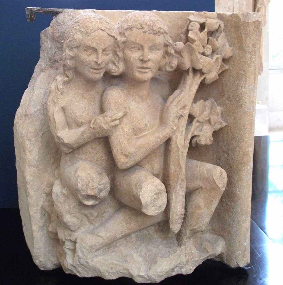 Adam et Eve ainsi que le Christ dans des sculptures originellement présentes sur la Cathédrale.