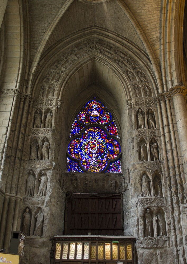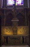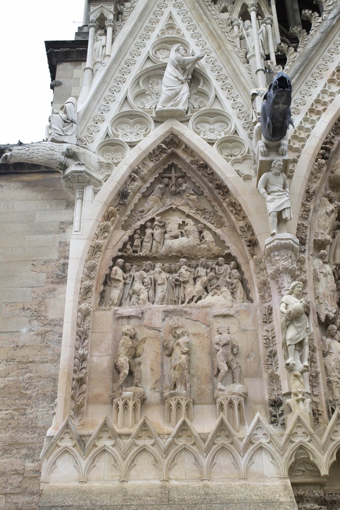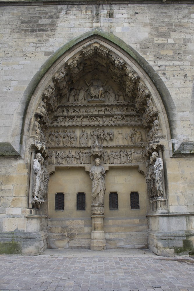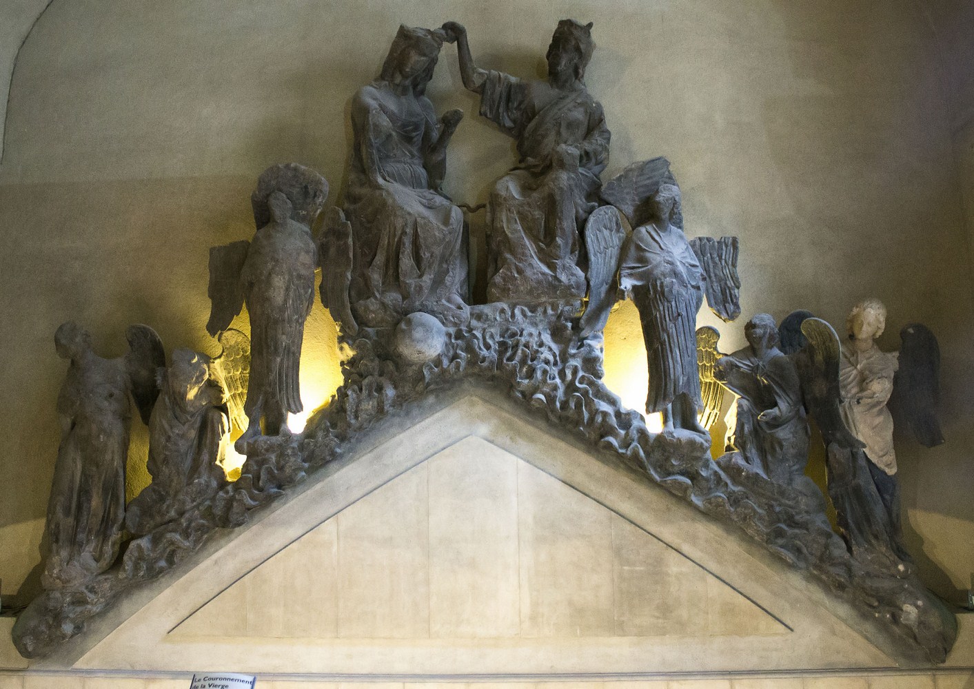 Le Couronnement de la Vierge du XII provenant du gâble surmontant le portail central occidental, il à été déposé en 1949 et remplacé en 1955 suite à un incendie en 1914.